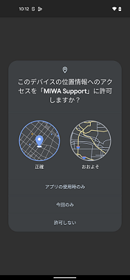 ※「おおよそ」を選択すると、MIWAsupportアプリの一部機能を使用することができません。設定は変更することが可能です。